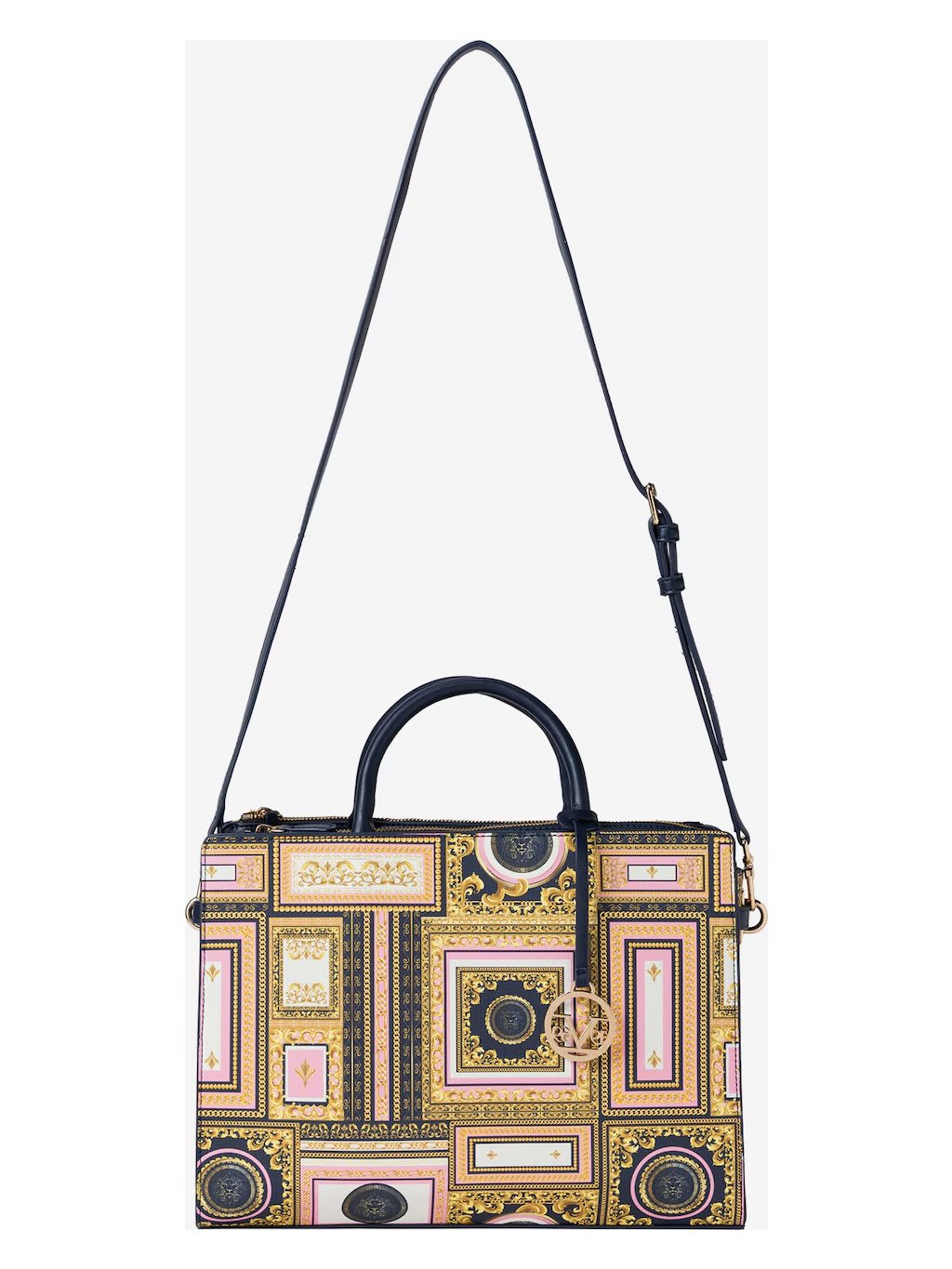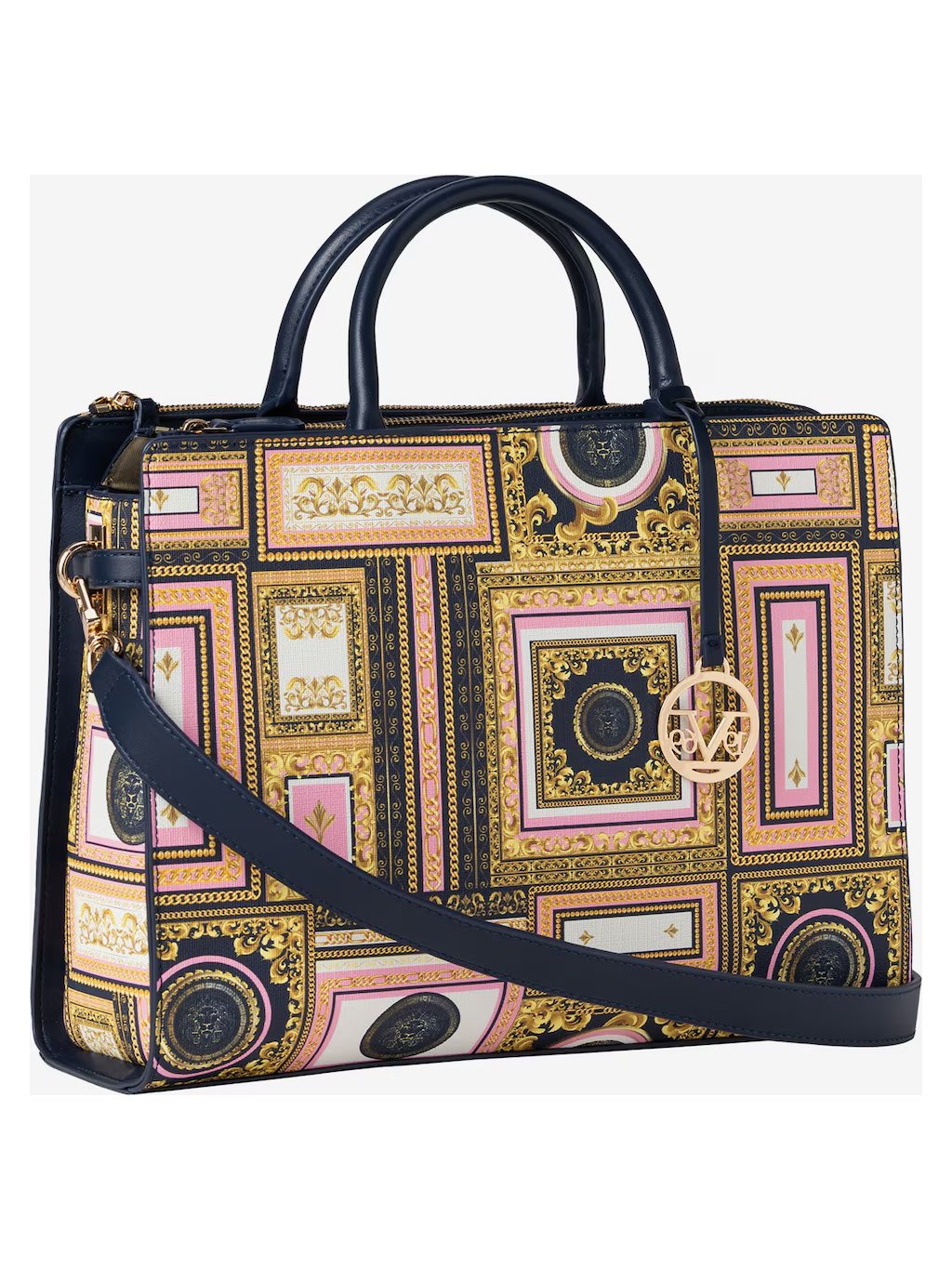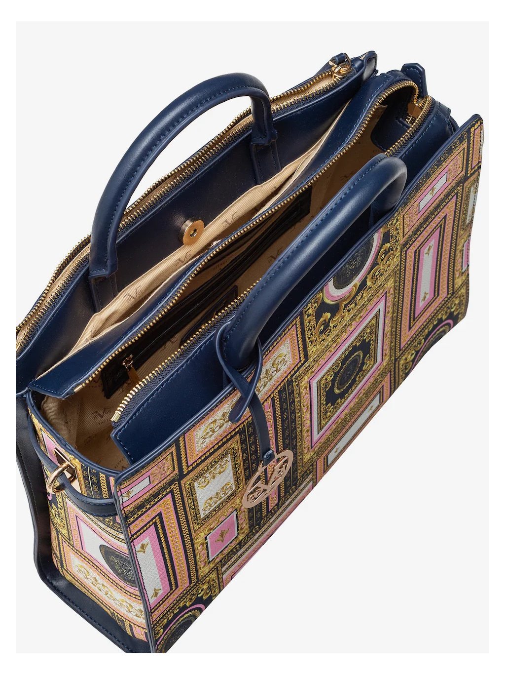 Dámská kabelka KARIMA od prestižní značky 19V69 Italia by Versace v sobě spojuje eleganci, funkčnost a výrazný styl. Celoplošný paisley vzor v kombinaci s decentní label destičkou vytváří nadčasový design, který skvěle doplní jak elegantní, tak každodenní outfit.