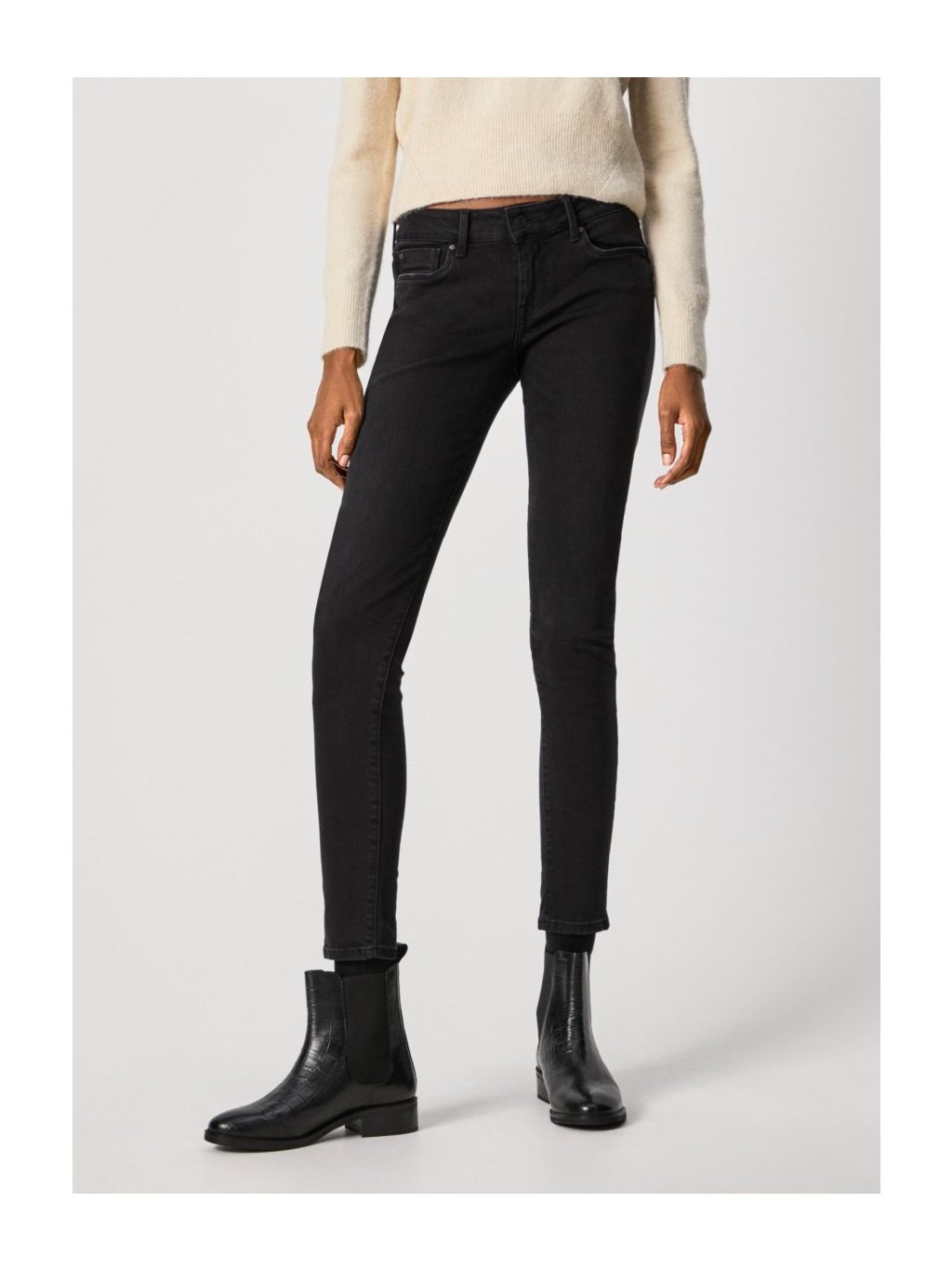 Dámské džíny Pepe Jeans SOHO ve skinny střihu kombinují moderní design a pohodlí. Střední pas a úzké nohavice perfektně padnou a opticky prodlužují nohy. Díky směsi 92 % bavlny, 6 % polyesteru a 2 % elastanu se příjemně nosí, drží tvar a umožňují volnost pohybu po celý den. Ideální volba pro každodenní styling – od ležérního outfitu po elegantní kombinace s halenkou nebo sakem.